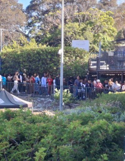 06:00–08:00: Fan Ferry (Calypso) anchored at buoy (R125/person; min. 80 supporters). Includes free sunset Ard Matthews concert ticket!