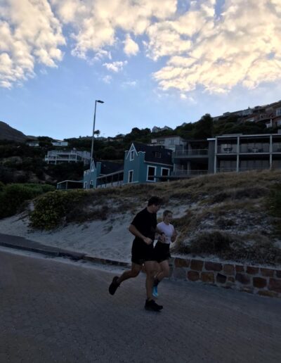 Leading the sunrise fun run from the beach to Chapman’s Peak and back in true Hout Bay spirit.